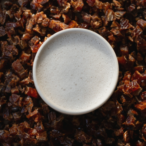 Nous avons testé des dizaines de variétés de dattes et trouvé celle qui se mélange le plus proprement, pour un lait végétal doux et naturellement sucré.